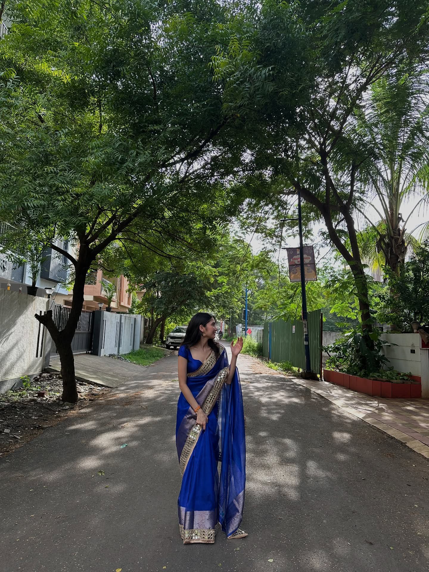 Drape yourself in royalty with our Royal Blue Banarasi Silk Saree, featuring a lustrous finish and intricate golden zari border. Perfect for festive occasions, weddings, and traditional events, this saree brings together grace and grandeur in every pleat. Its rich fabric and classic design make it a wardrobe essential for women who love to embrace timeless ethnic beauty. Features: Premium Banarasi Silk with rich sheen Handwoven golden zari border & pallu Lightweight & comfortable drape Ideal for weddings, festive functions & parties Pair it with statement jewelry for a regal look 📏 Length: 5.5 m saree + 0.8 m blouse piece 🧵 Fabric: Banarasi Silk 📦 Care: Dry Clean Only