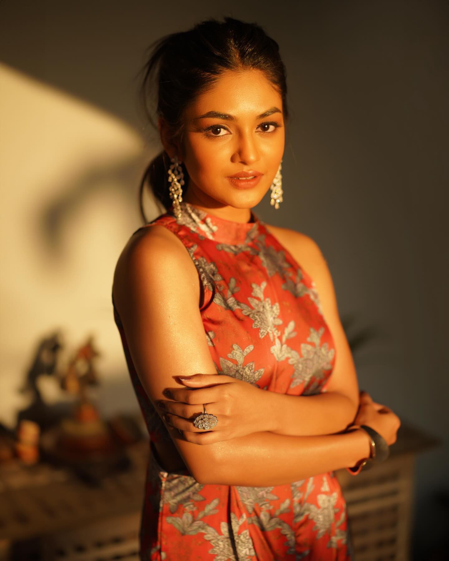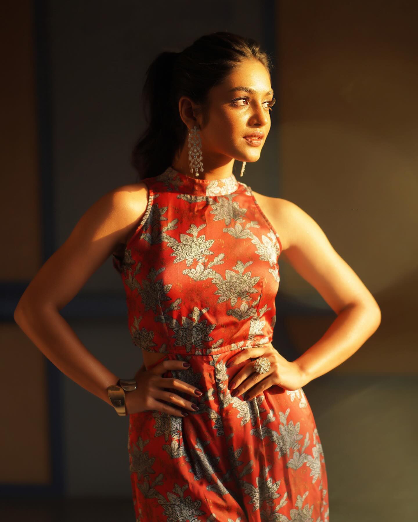 Make a bold statement with our Rust Red Floral Jumpsuit, designed for the modern woman who’s not afraid to stand out. This sleeveless jumpsuit features an elegant high neckline and stunning side cut-out detailing that adds a touch of edginess to the graceful floral design. Crafted from a silky-soft fabric with a subtle sheen, the rich rust red base is adorned with intricate silver floral motifs — perfect for festive nights, cocktail parties, or a glamorous dinner date. This jumpsuit effortlessly blends tradition with contemporary fashion, making it a versatile addition to your wardrobe. Pair it with statement earrings and heels for an unforgettable look. Key Features: High neck with sleeveless design Side waist cut-outs for a modern silhouette Shimmering silver floral print on a rust red base Soft, flowy fabric for comfort and elegance Perfect for festive evenings and party wear